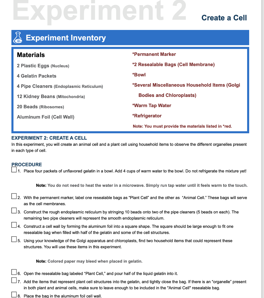 If you are making a cell model you can either use plastic in animal crossing for he game cube, a lot of items have a special color associated with them if you get creative, there are many household items you can use to create a model, such as.